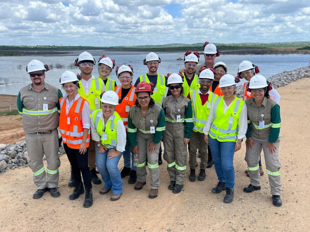 Estudantes e professores do curso conheceram de perto os fluxos e procedimentos da planta de beneficiamento, fazendo um tour pelo platô da Britagem, pelo Mirante da Mina e pela Barragem Serrote.